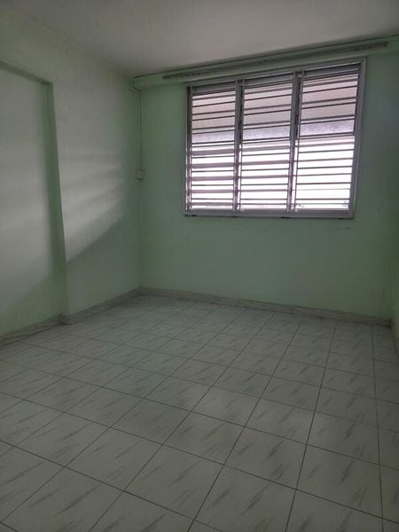 Step into a well-maintained 2-bedroom flat that exudes a simple yet functional charm. The moment you enter, you are greeted by a warm ambiance, highlighted by the inviting archway leading to the kitchen and the moderate natural light that fills the living and dining areas. The beige leather-look sofa and glass-top coffee table create a cozy living space, while the dining area features a stylish glass-top dining table surrounded by sleek black chairs, all set against a backdrop of white tiled walls with decorative borders.