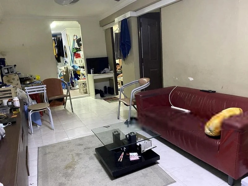 Step into a world of simplicity and functionality in this well-maintained HDB flat. The living room welcomes you with moderate natural light streaming through a large window, offering a pleasant view of the urban landscape intertwined with greenery. The tiled flooring adds a touch of practicality, while the fully-furnished space provides a cozy ambiance, perfect for relaxation.