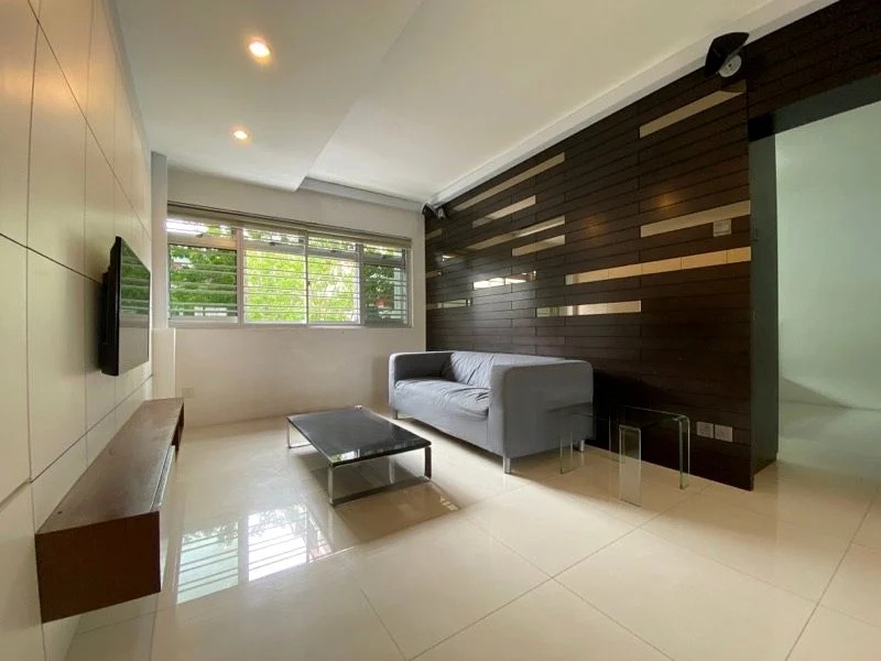 Step into a sanctuary of modern minimalism at this beautifully renovated HDB flat. The abundant natural light floods through large windows, illuminating the polished tile flooring and highlighting the sleek finishes throughout. Enjoy serene views of lush greenery and residential buildings that create a peaceful ambiance, perfect for relaxation.