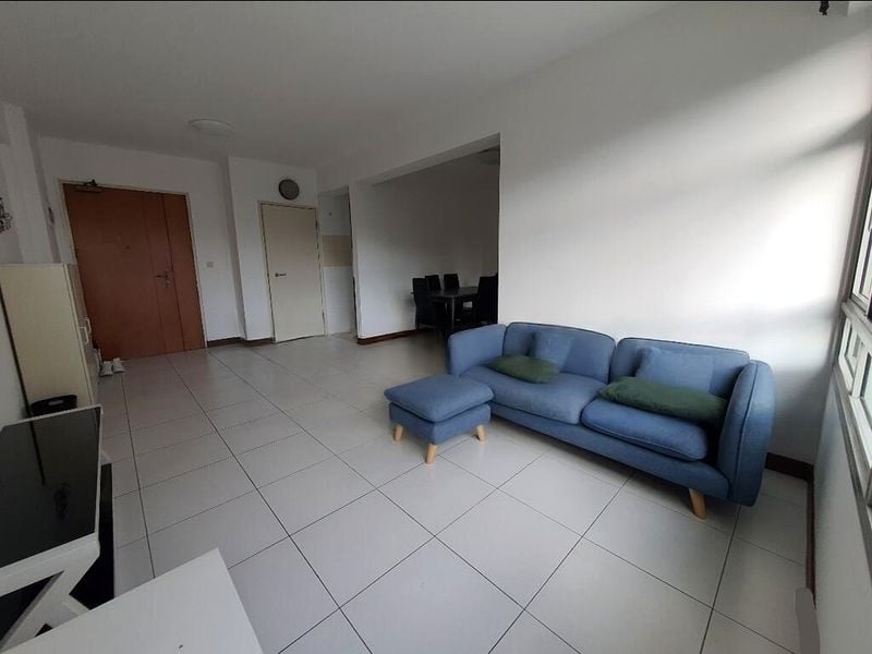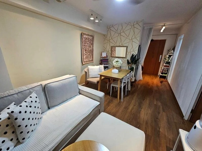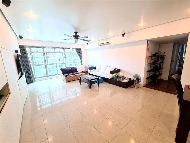 Step into a bright and airy sanctuary at 602A Punggol Ctrl, where the spacious open-plan living and dining area greets you with a sense of warmth and comfort. The white tiled flooring reflects natural light, creating an inviting ambiance, while views of neighboring greenery add a touch of serenity to your everyday life.