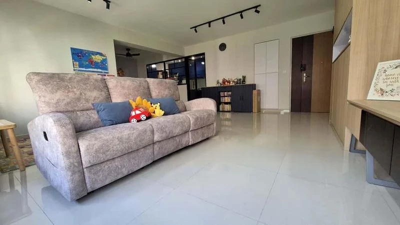 Step into a beautifully renovated 3-bedroom flat that exudes modern elegance. The moment you enter, you are greeted by striking marble-patterned feature walls that create a sophisticated ambiance, complemented by cove lighting that bathes the space in a warm glow. The moderate natural light enhances the contemporary design, making every corner feel inviting and stylish.