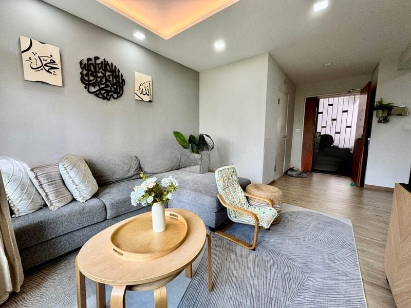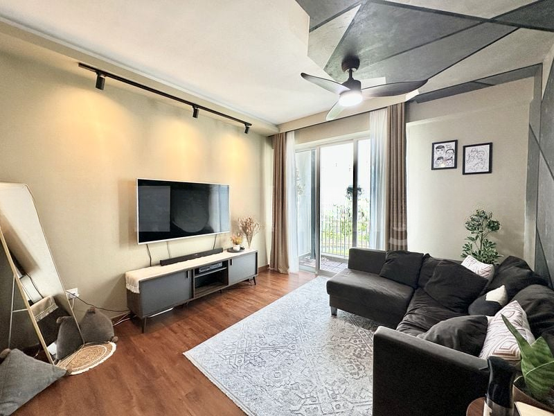 Step into this beautifully renovated 2-bedroom HDB flat and be greeted by an abundance of natural light pouring through large windows, illuminating the sleek black marble-look floor tiles that create a modern and functional ambiance. The open concept living and dining area seamlessly blends with the kitchen, offering a perfect space for relaxation and entertaining while overlooking a serene courtyard and lush greenery.