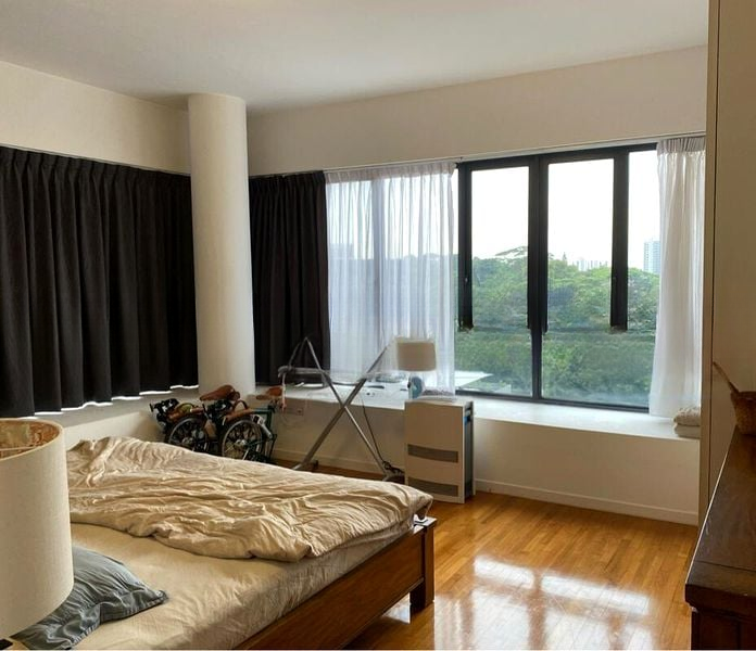 This well-maintained 4-bedroom unit boasts a thoughtful open-concept layout, perfect for modern living. The galley kitchen features sleek white cabinetry and a gas hob, ideal for culinary enthusiasts. The master bedroom, adorned with elegant wooden parquet flooring, offers a serene retreat with a bay window ledge for relaxation. Enjoy seamless access to the spacious balcony, where you can unwind while soaking in the unobstructed views.