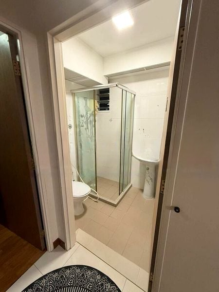 Step into a well-maintained 2-bedroom flat that exudes a warm and lived-in ambiance. The moderate natural light filtering through large windows drapes the living room and bedrooms in a soft glow, complemented by vibrant orange curtains that add a cheerful touch. The functional layout features tiled flooring throughout, enhancing the space's practicality while the mosaic tile accents in the kitchen and bathroom provide a unique character.