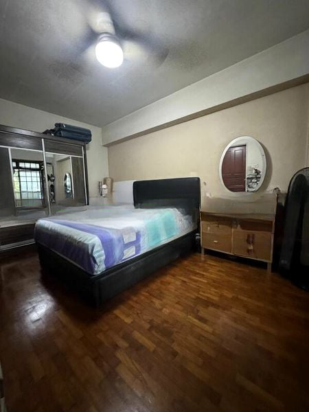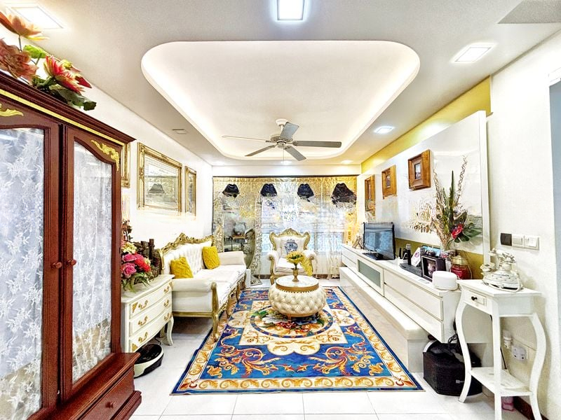 Step into this beautifully renovated 3-bedroom HDB flat and be greeted by a modern minimalist ambiance, accentuated by marble-look floor tiles that flow seamlessly throughout the open-concept living area. Natural light filters in, enhancing the elegant finishes and creating a warm, inviting atmosphere. The standout feature of the bathroom is the luxurious freestanding bathtub, complemented by a rain shower and a striking mosaic tile feature wall.