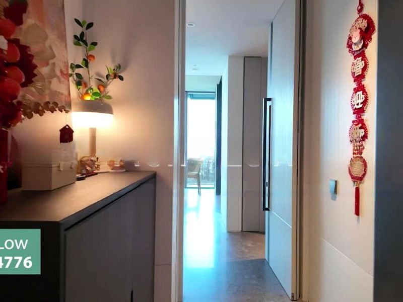 Step into a world of modern elegance as you enter this beautifully designed 1-bedroom unit at Cuscaden Reserve. The open-concept living area greets you with a striking curved white sofa, complemented by a sophisticated track lighting system that enhances the marble-look flooring. Enjoy captivating views of the city skyline from your private balcony, perfect for outdoor dining amidst the urban landscape.