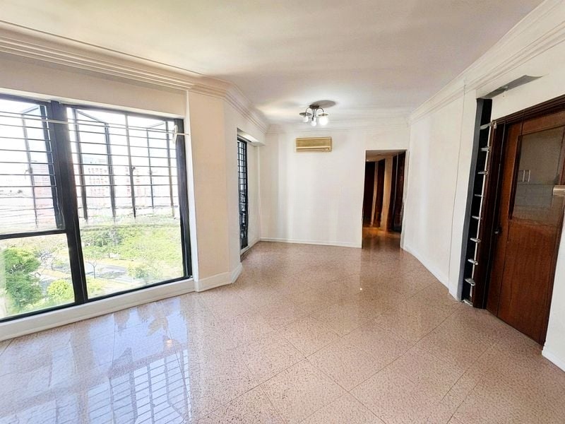 Step into a world of elegance as you enter this beautifully maintained 3-bedroom unit at Regentville. Bathed in natural light, the spacious living area features stunning herringbone parquet flooring and offers breathtaking views of the large circular swimming pool and city skyline, creating an inviting ambiance that feels both bright and airy.