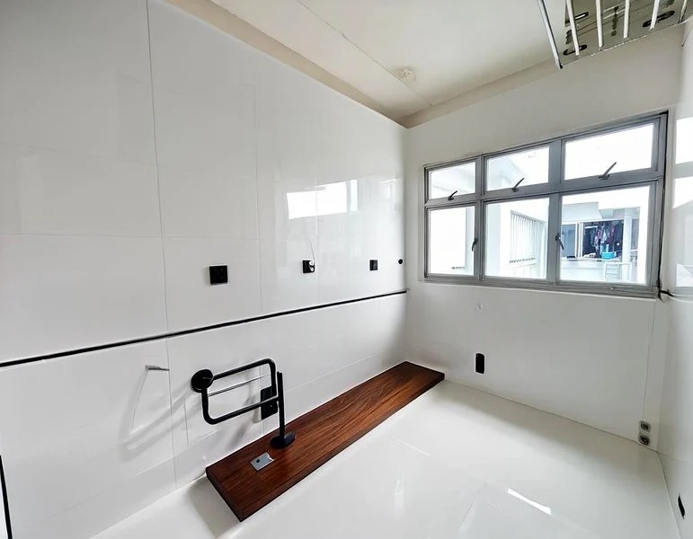 This well-maintained 2-bedroom, 2-bathroom flat boasts a thoughtful layout with fully-furnished interiors. The living room features a stunning marble-patterned TV console, perfect for entertaining, while the kitchen is equipped with built-in cabinetry for optimal storage. Each bathroom is designed with a vessel sink and under-cabinet lighting, ensuring both style and functionality. The foyer welcomes you with built-in wooden shelving and a shoe storage area, enhancing the overall practicality of the home.