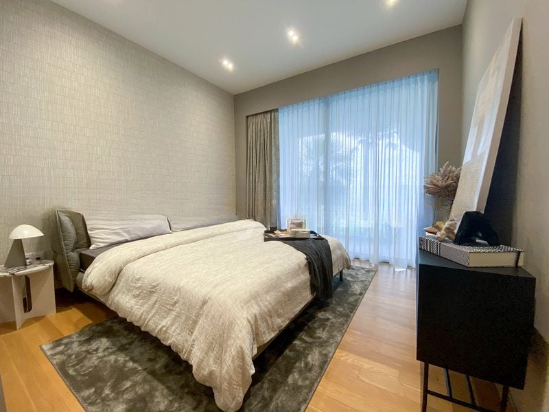 Step into this stunning 4-bedroom unit at SEASCAPE and be captivated by the abundant natural light flooding through floor-to-ceiling glass doors, illuminating the polished stone flooring. The bright and airy ambiance invites you to unwind while enjoying panoramic views of the sea, greenery, and islands from your large curved balcony, perfect for relaxation or entertaining guests.