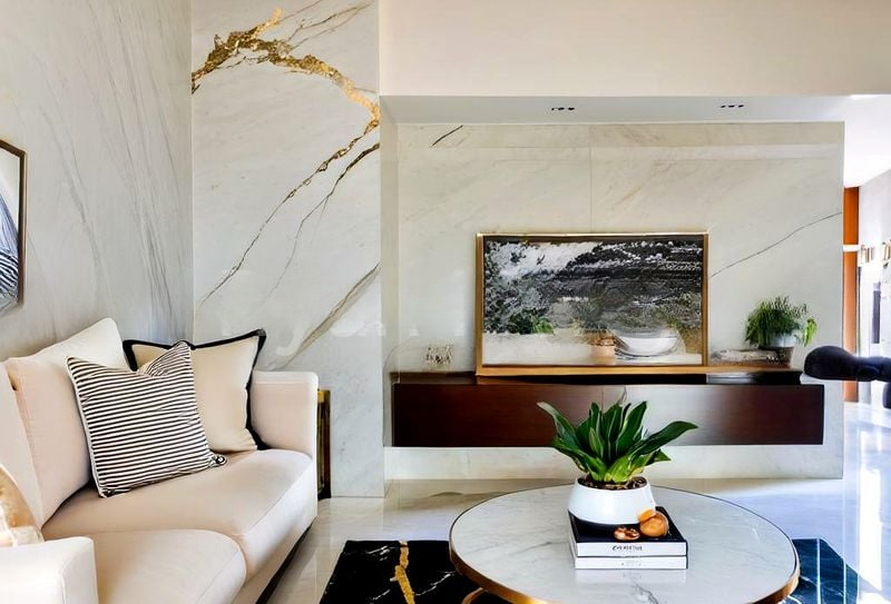 Step into a sanctuary of modern elegance where abundant natural light floods through floor-to-ceiling windows, illuminating the marble-look flooring and cozy ambiance of this beautifully renovated unit. The open-concept living room invites you to unwind, while views of the lush greenery and sparkling lap pool create a serene backdrop for your daily life.