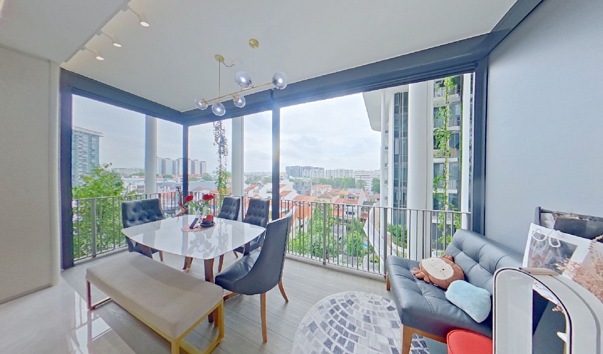 Step into a bright and airy sanctuary at The Tembusu, where abundant natural light floods through floor-to-ceiling windows, accentuating the elegant finishes throughout. The glass-enclosed balcony, transformed into a stylish dining area, offers panoramic views of lush greenery and the vibrant cityscape, creating an inviting atmosphere for both relaxation and entertainment.
