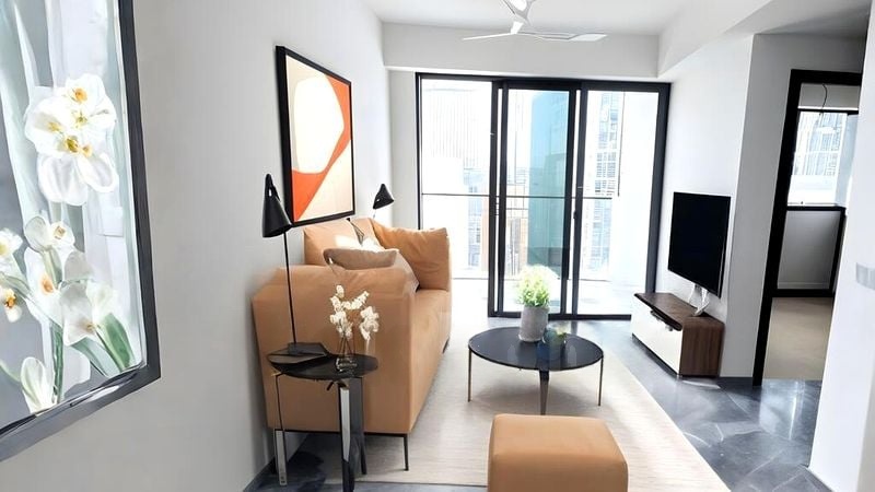 Step into a world of elegance as you enter this brand-new unit at ONE BERNAM. The abundant natural light floods the open-concept living room, accentuating the exquisite marble flooring and the breathtaking views of the city skyline through the floor-to-ceiling windows. The modern minimalist ambiance invites you to unwind in a space that feels both luxurious and welcoming.