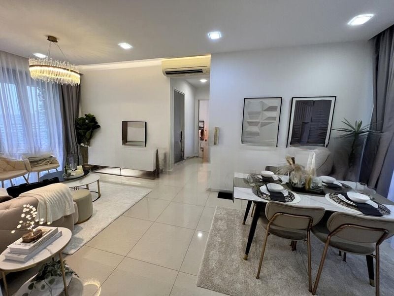 Step into a world of elegance as you enter this well-maintained unit at ARC AT TAMPINES. Bathed in natural light, the open-concept living area features a striking designer chandelier and a floating TV console, creating a warm and inviting ambiance. With dual balconies offering urban views, this space seamlessly blends indoor comfort with outdoor charm.