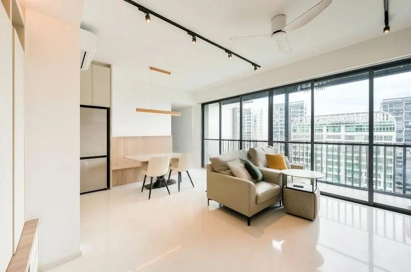 Step into a world of elegance and comfort in this beautifully renovated 3-bedroom unit at Foresque Residences. The moment you enter, you are greeted by an abundance of natural light pouring through the floor-to-ceiling windows, illuminating the open-plan living and dining area. The bright ambiance, complemented by track lighting and a stylish white ceiling fan, creates a welcoming atmosphere that feels both spacious and intimate. Enjoy serene views of the neighboring greenery and the city skyline, making every moment spent here a visual delight.