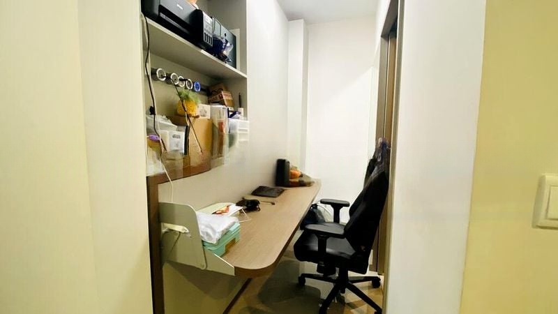 This thoughtfully designed 2-bedroom unit boasts standout features including a glass-enclosed kitchen with sleek grey cabinetry, a built-in oven, and pristine white countertops. The bathroom is a spa-like retreat, featuring a wall-hung toilet, full-width mirrored cabinets, and a luxurious glass shower screen. With a balcony that offers a seamless connection to the outdoors, you can enjoy your morning coffee with a view.