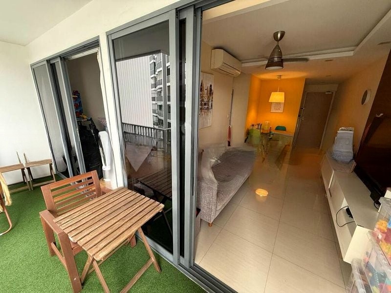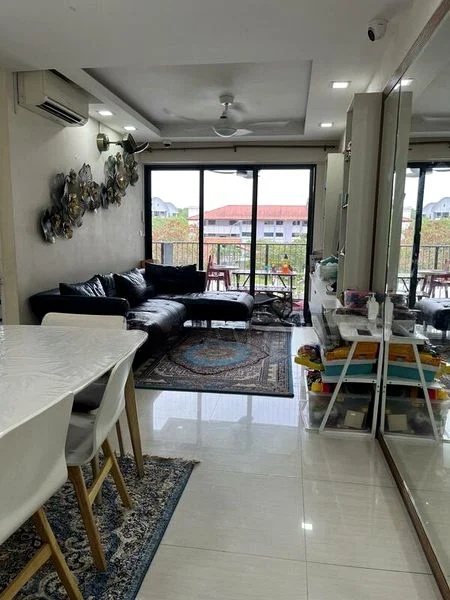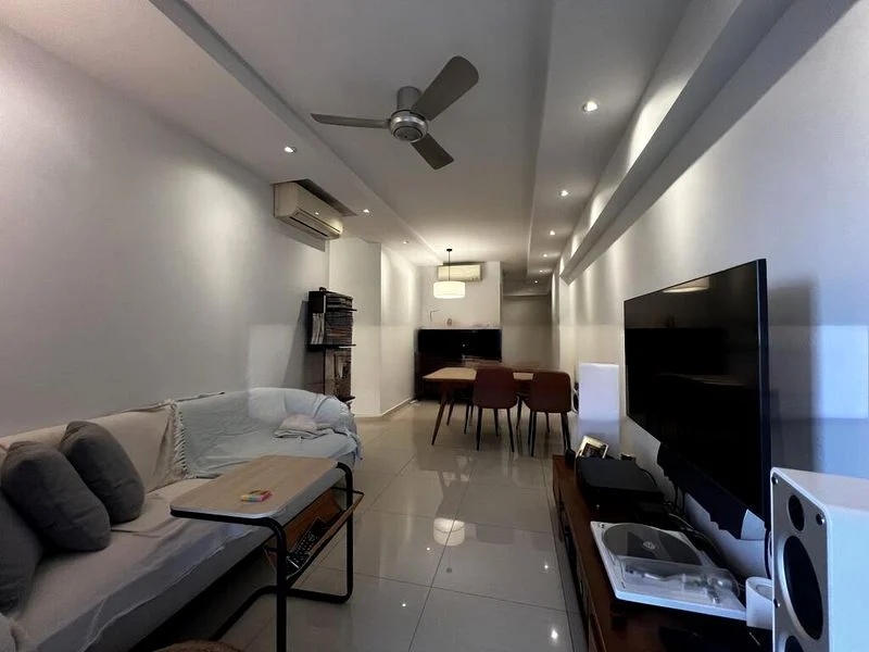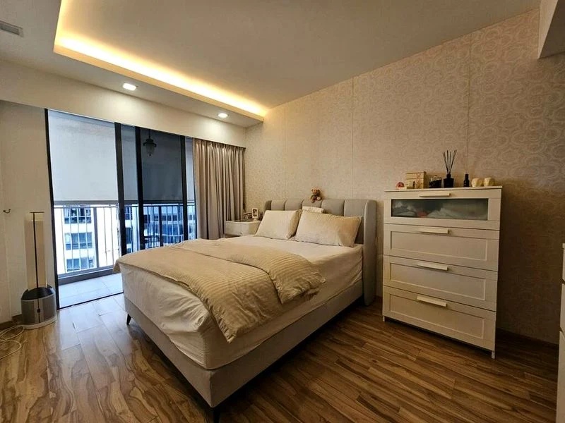Step into this beautifully renovated 3-bedroom flat and be greeted by a warm ambiance that envelops you. The living room, adorned with warm cove lighting and a striking yellow accent wall, flows seamlessly through sliding glass doors to a cozy balcony. Enjoy views of lush greenery and the vibrant playground, creating a serene retreat in the heart of the city.