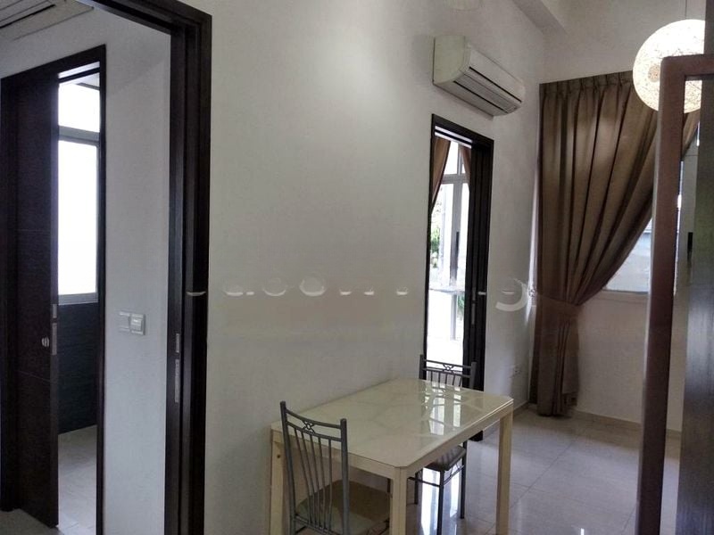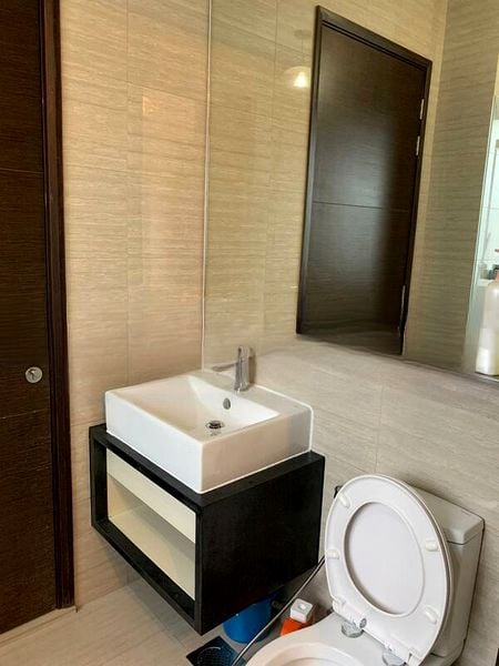 This efficient 1-bedroom plus study unit features a well-planned layout, including a compact dining area with a space-saving table that integrates seamlessly with the living space. The kitchen boasts an L-shaped design with two-tone cabinetry and a sleek black backsplash, perfect for culinary enthusiasts. The master bedroom is a tranquil retreat, complete with a floor-to-ceiling mirrored wardrobe and sheer curtains that invite soft light in. The bathroom features a luxurious rain shower and a stylish glass partition, ensuring a spa-like experience at home.