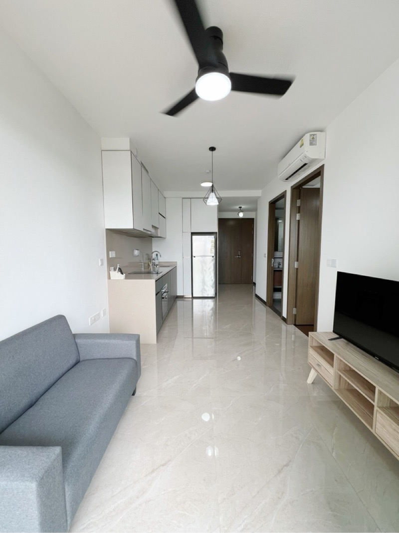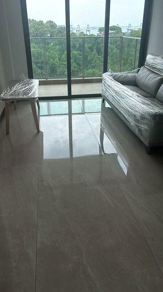 Step into a world of elegance as you enter this brand-new 1-bedroom unit at Normanton Park. The abundant natural light floods the open-concept living and dining area, accentuated by high-gloss marble-look tiles and floor-to-ceiling sliding balcony doors that frame breathtaking views of the city skyline and lush greenery. The airy ambiance invites you to unwind and enjoy the serene surroundings.