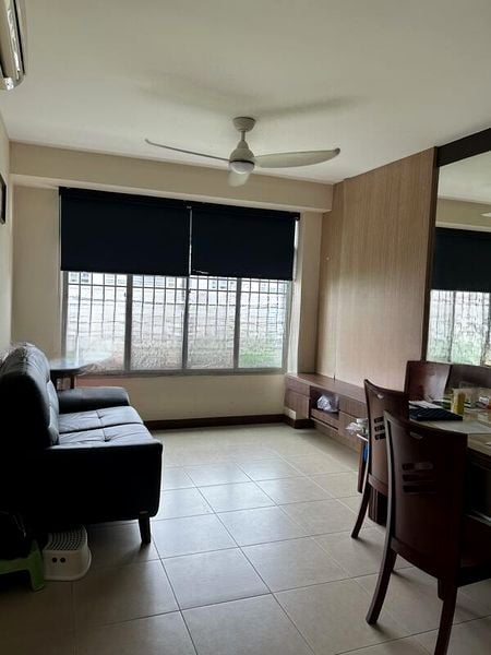 Step into a bright and airy sanctuary at 195C Punggol Rd, where abundant natural light floods the space, highlighting the glossy floor tiles in the living area and the warm parquet flooring in the bedrooms. The corner windows in the second bedroom offer delightful views of lush greenery, creating a serene ambiance that invites relaxation.