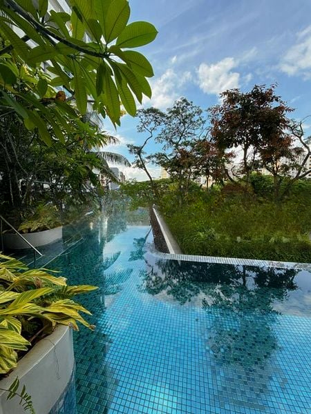Step into this beautifully maintained unit at The Tre Ver and be greeted by an abundance of natural light that dances across the polished tile flooring. The modern minimalist design creates a serene ambiance, while the expansive views of greenery and the rooftop garden invite you to unwind in your own private oasis.