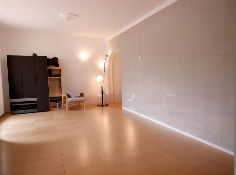The unit features a generous living room perfect for relaxation, complemented by a wall-mounted TV and a ceiling fan for added comfort. The kitchen boasts patterned floor tiles and light wood cabinetry, providing a stylish yet practical cooking space. Each bedroom is fitted with parquet flooring and built-in wardrobes, offering both elegance and ample storage. With a thoughtful renovation, this home is ready for you to move in and make it your own.