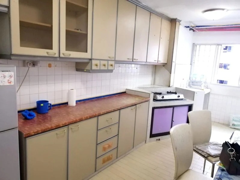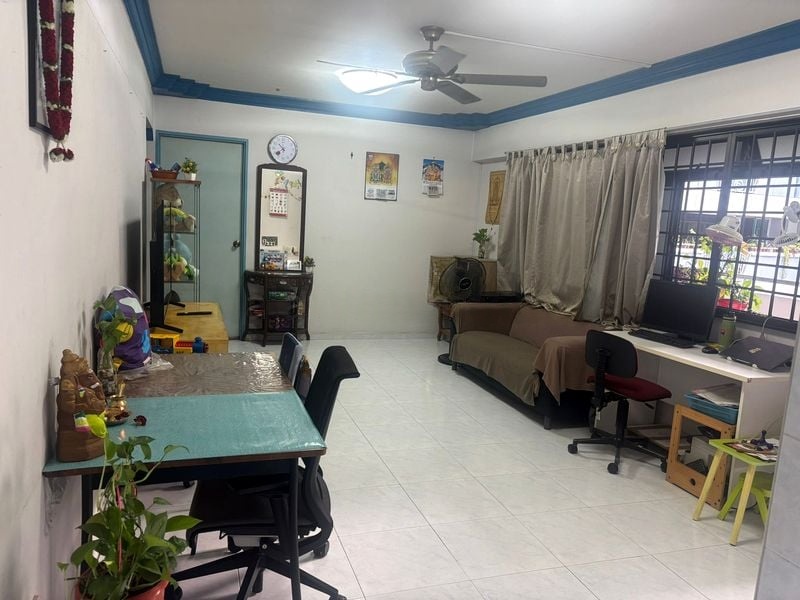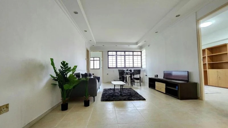 Step into a warm and inviting atmosphere as you enter this cozy 3-bedroom HDB flat. The open-concept living and dining area is illuminated by a stylish chandelier, creating a charming ambiance perfect for family gatherings. Tiled flooring throughout adds a touch of practicality, while the moderate natural light filtering through the windows enhances the overall warmth of the space.