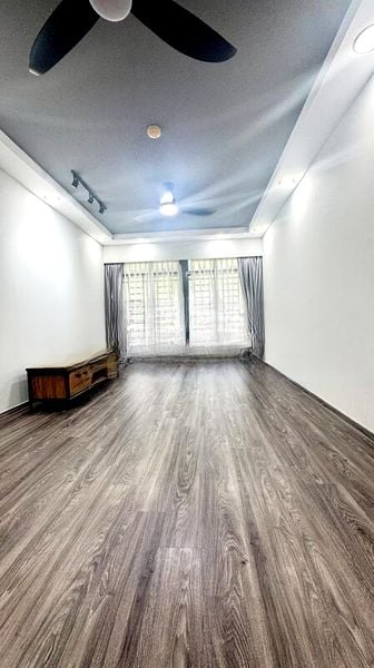 Step into this beautifully renovated 2-bedroom flat and be greeted by an abundance of natural light that fills the open-plan living and dining area. The modern minimalist design is accentuated by a striking wood-paneled feature wall, which cleverly conceals a hidden door, and large windows adorned with horizontal blinds that offer a view of the surrounding residential landscape.