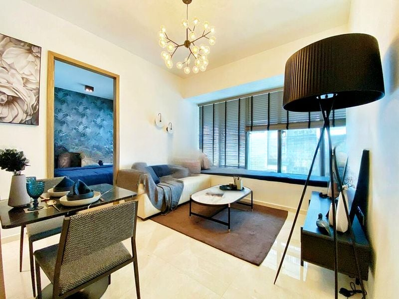 Step into a world of modern elegance at 8 Saint Thomas, where abundant natural light floods the space, highlighting the sleek finishes and minimalist design. The panoramic views of the pool, lush greenery, and the vibrant city skyline create an inviting ambiance that makes you feel instantly at home.