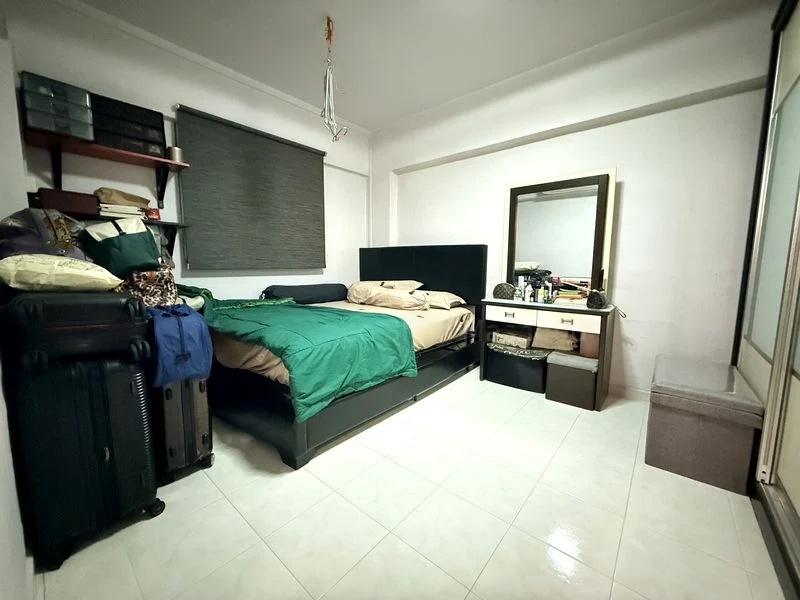 This well-maintained 2-bedroom unit boasts a practical layout with standout features including a large built-in wardrobe in the master bedroom, textured wallpaper, and a cozy ambiance throughout. The bathrooms are functional with tiled walls and exposed plumbing pipes, while the louvered window allows for ventilation. With a floor area of 785 sqft, this flat is perfect for comfortable living.