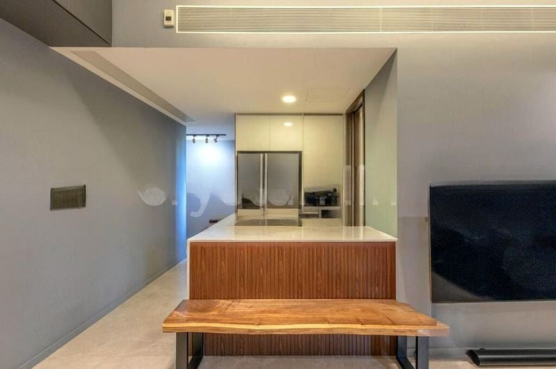 Step into a world of elegance and tranquility as you enter this beautifully renovated unit at Amber 45. Bathed in abundant natural light, the modern minimalist design features floor-to-ceiling windows that frame picturesque views of lush greenery. The ambiance is enhanced by cove lighting and high-quality finishes, creating a serene and inviting atmosphere.