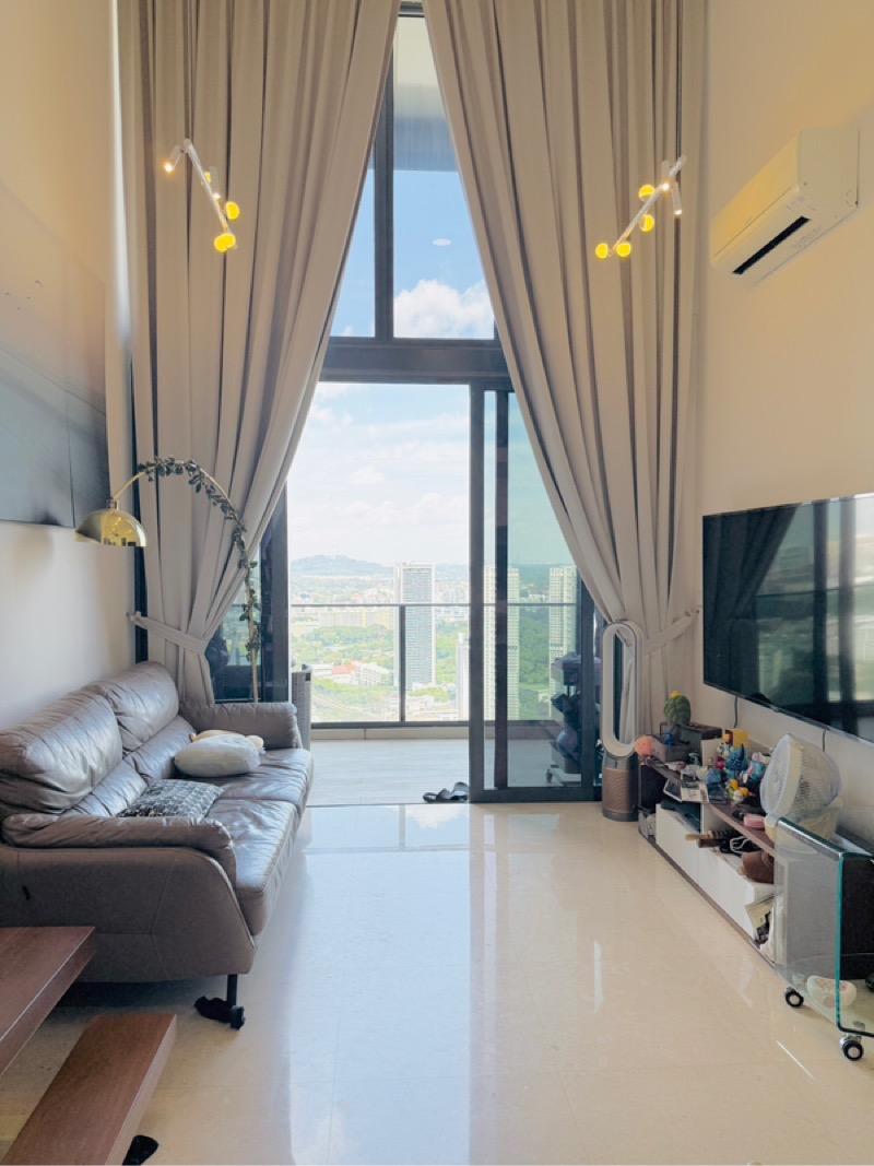 Step into a bright and airy sanctuary where abundant natural light pours through floor-to-ceiling windows, illuminating the modern finishes and double volume ceiling. The unblocked urban views from this high-floor unit offer a breathtaking backdrop, creating an inviting ambiance that makes you feel right at home.