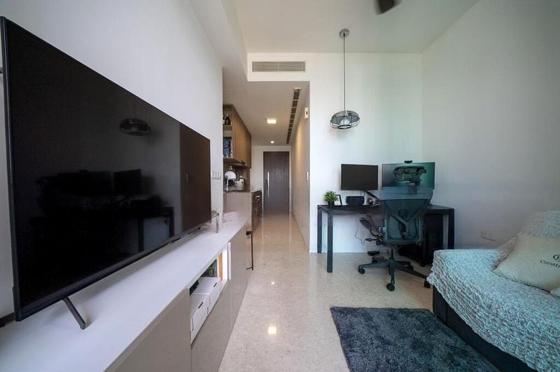 Step into a world of elegance and tranquility as you enter this brand-new unit at Principal Garden. Bathed in abundant natural light, the open-concept living space features polished tile flooring and floor-to-ceiling windows that frame breathtaking views of the city skyline and lush greenery. The large balcony, adorned with a wood-textured feature wall, invites you to unwind in style.