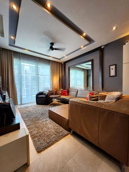 Step into a world of elegance as you enter this well-maintained 4-bedroom unit at The Nexus. The abundant natural light floods through the floor-to-ceiling windows, highlighting the high ceilings and wooden flooring that create a bright and airy ambiance. Enjoy serene views of the pool and lush greenery from your private balcony, perfect for unwinding after a long day.