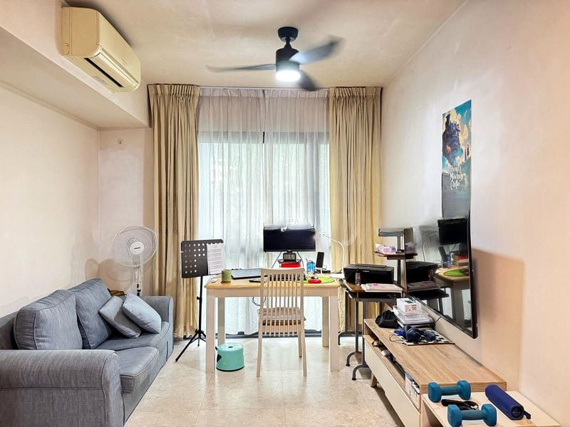 This well-maintained unit features an efficient 2-bedroom plus study layout, complemented by two bathrooms for added convenience. The kitchen boasts sleek white cabinetry, a built-in oven, and stainless steel hood, while the bathrooms are equipped with a luxurious rain shower and glass shower partition. The standout Private Enclosed Space (PES) offers a versatile outdoor area, perfect for a quiet retreat or hosting gatherings.