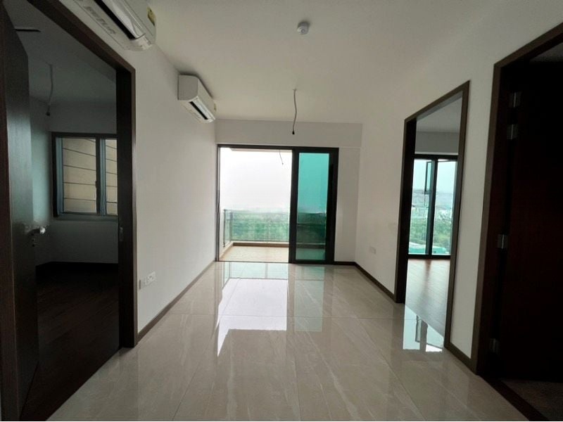 This well-maintained unit features a modern layout with standout elements including a stylish kitchen equipped with dual-tone cabinets, an induction hob, and built-in oven. The living room seamlessly connects to a private balcony, perfect for outdoor seating and enjoying the serene surroundings. The bedroom boasts dark wood flooring, a ceiling fan, and a mirrored wardrobe, offering both comfort and functionality.