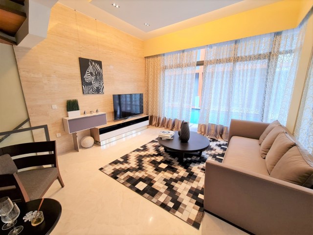 Step into a world of modern luxury as you enter this beautifully designed unit at Seahill. Bathed in abundant natural light, the open-concept living area boasts floor-to-ceiling windows that frame picturesque views of the pool and lush greenery. The stone-textured feature wall and designer pendant lighting create an inviting ambiance that is both sophisticated and warm.