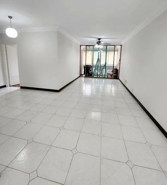 Step into a world of tranquility as you enter this bright and airy 2-bedroom unit at Orchid Park Condominium. Bathed in abundant natural light, the spacious living room features large white floor tiles with diamond accents, complemented by sliding glass doors that open to a charming balcony overlooking lush greenery. The ambiance is inviting, creating a perfect retreat for relaxation.