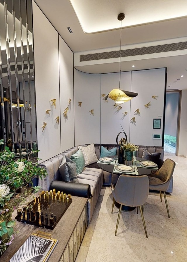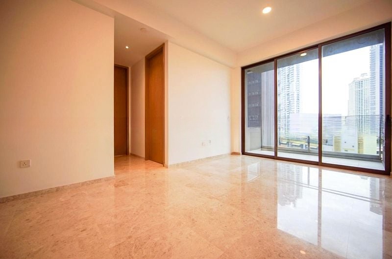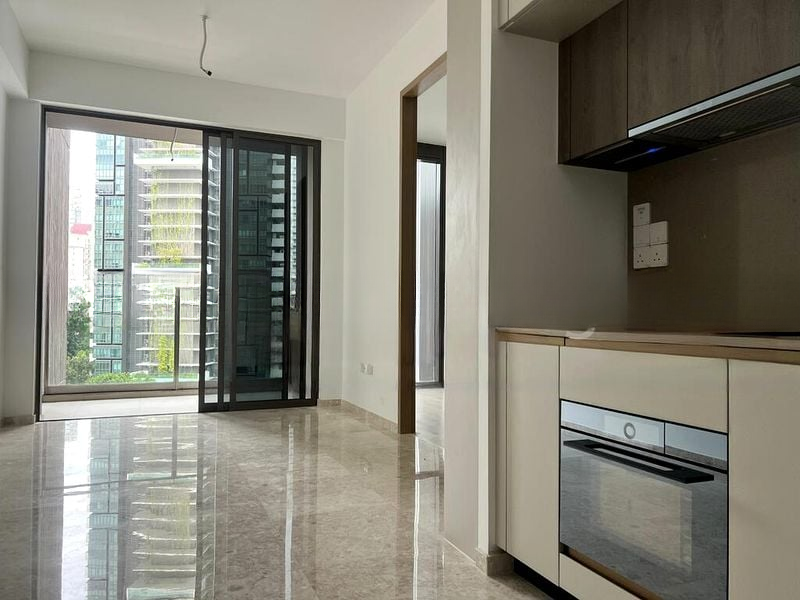 Step into a modern minimalist oasis at The Avenir, where abundant natural light floods the open-concept living space, highlighting exquisite marble flooring and designer finishes. The seamless flow from the living room to the balcony invites you to unwind while soaking in breathtaking views of the city skyline.