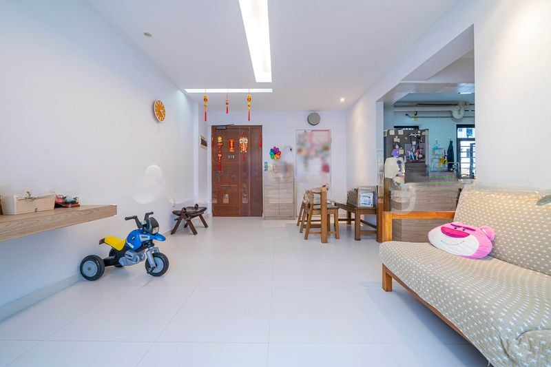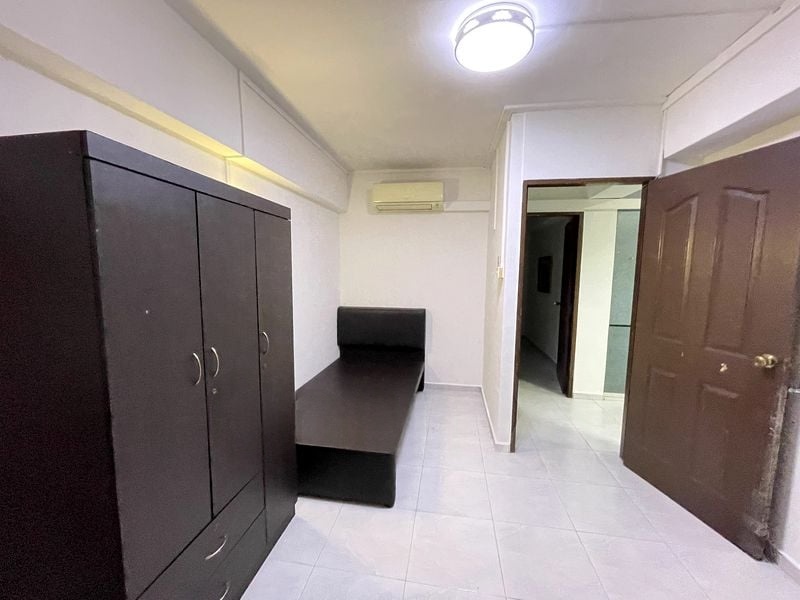 Step into this well-maintained HDB flat and be greeted by a warm ambiance accentuated by decorative ceiling cornices and tiled flooring throughout. The moderate natural light filters through the living area, creating a welcoming space that feels both functional and inviting. Enjoy the comfort of air conditioning in the bedrooms and a ceiling fan in the living room, ensuring a pleasant atmosphere year-round.