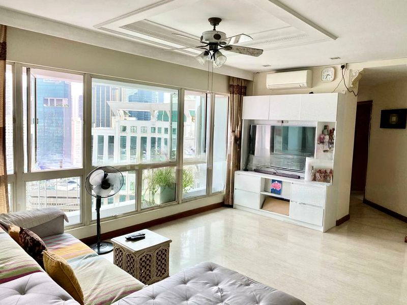 Step into this beautifully maintained 4-bedroom unit at Burlington Square, where abundant natural light floods the space, creating a bright and airy ambiance. The large windows offer breathtaking views of the city skyline, while elegant finishes, including a chandelier and decorative ceiling medallions, elevate the living experience.