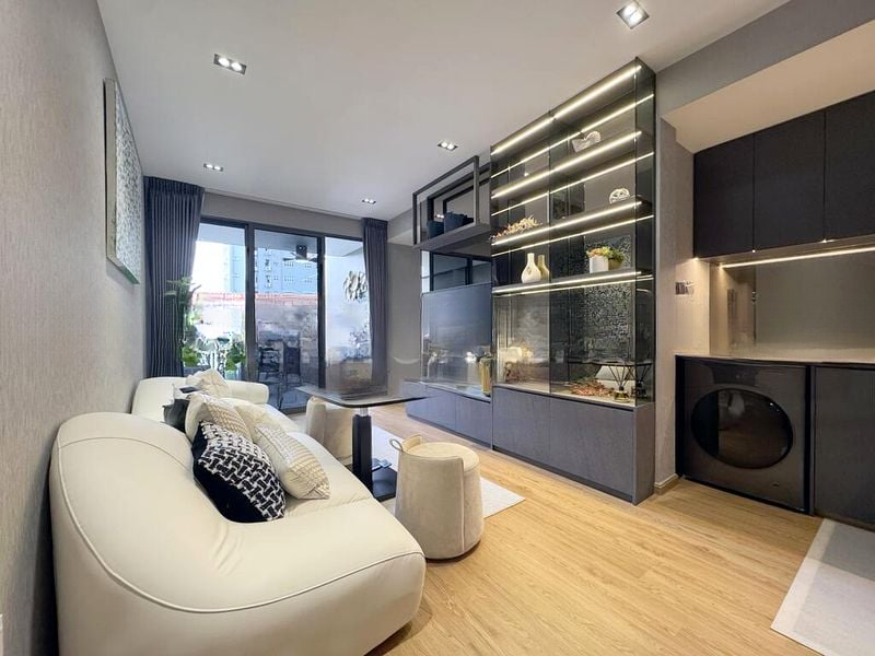 This well-maintained 3-bedroom unit boasts an open-concept living and dining area, featuring an integrated dark wood TV console and designer wall art that adds character to the space. The standout horse-shaped designer bookshelf in the study and the vertical wood-slat feature wall in the bedroom create unique focal points, while the ensuite bathroom with a sliding door offers convenience and privacy. Every corner of this home reflects quality and style, making it perfect for modern living.