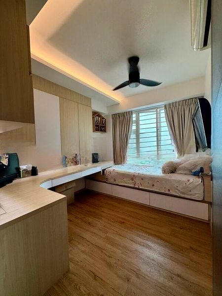 Step into a beautifully renovated space where abundant natural light floods through large windows, illuminating the modern minimalist design. The captivating views of the city skyline create an inviting ambiance, making this flat a perfect sanctuary in the heart of Bukit Batok.