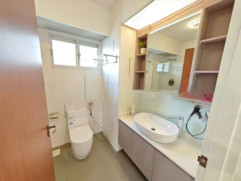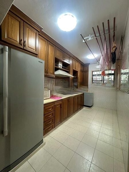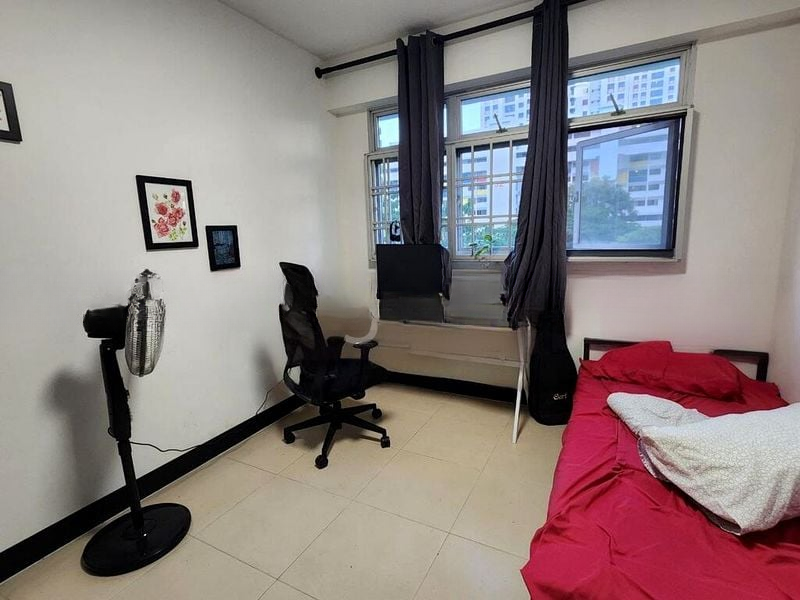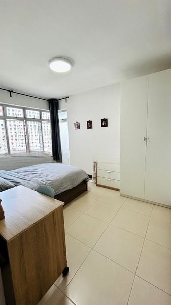 Step into this functional 2-bedroom flat and immediately appreciate the open layout that seamlessly connects the living room to the kitchen. The white square floor tiles and crown molding create a classic ambiance, while the urban views offer a glimpse of city life. Although natural light is limited, the space is fully furnished, providing a comfortable and practical living environment.