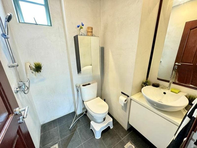 This thoughtfully designed layout features a spacious master bedroom with an ensuite bathroom, complete with a contemporary vessel sink and a luxurious rain shower. The home office is equipped with a dual monitor setup and an indoor pull-up bar, catering to both work and fitness needs. Enjoy the convenience of built-in floor-to-ceiling wardrobes and an enclosed balcony that provides unobstructed views, making it an ideal spot for relaxation or entertaining guests.