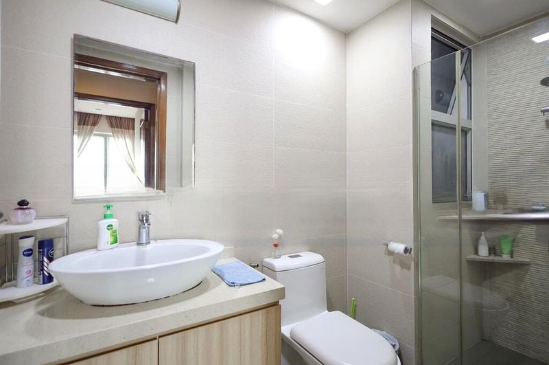The open-concept layout seamlessly connects the living and dining areas, ideal for entertaining. The master bedroom is a sanctuary of comfort, boasting parquet flooring, a built-in wooden TV console, and those same breathtaking views. Each bedroom is equipped with built-in full-height wardrobes and integrated study areas, ensuring ample storage and functionality for family living. This well-maintained unit is fully furnished, ready for you to move in and enjoy.
