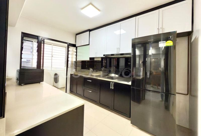 Step into this beautifully renovated 4-bedroom HDB flat and be greeted by an abundance of natural light cascading through large windows, illuminating the open concept living and dining areas. The modern minimalist design, complemented by wood-look vinyl flooring and grey accent walls, creates a serene ambiance that invites relaxation. Enjoy unblocked views of lush greenery and the nearby playground, enhancing your living experience.