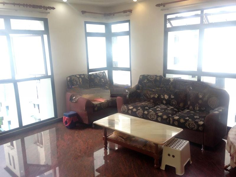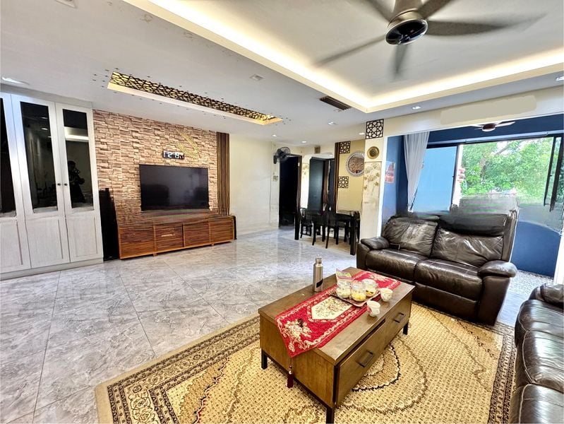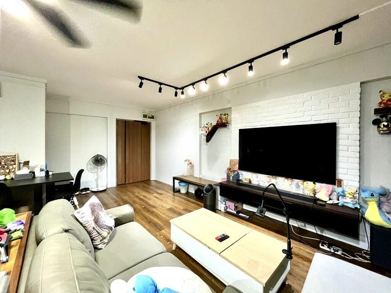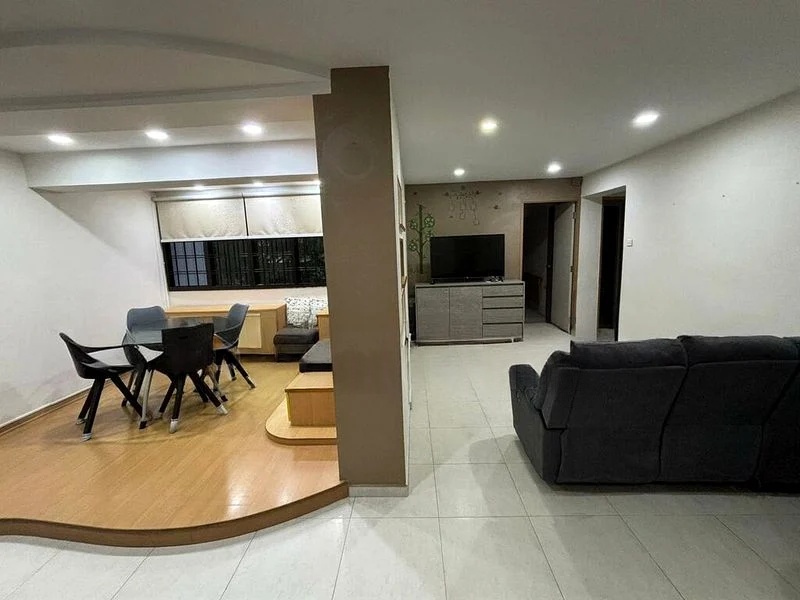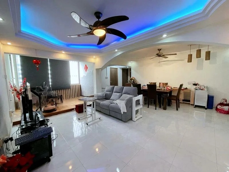 Step into this well-maintained 3-bedroom flat at 191B Rivervale Drive and be greeted by an abundance of natural light that fills the space, creating a bright and airy ambiance. The polished granite flooring in the living room complements the large windows, offering an urban view that enhances the overall aesthetic. The floral sofa set and marble-top coffee table add a touch of elegance, making it a perfect space for relaxation and entertaining.