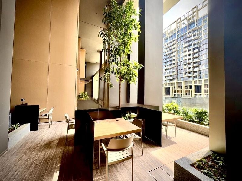 Step into this brand-new, designer unit and be captivated by the modern urban ambiance that envelops you. The unique pixelated architectural facade draws your eye, while the moderate natural light fills the space, highlighting the potential for a stylish home. Enjoy breathtaking views of the city skyline and lush greenery right from your windows, creating a serene yet vibrant living environment.