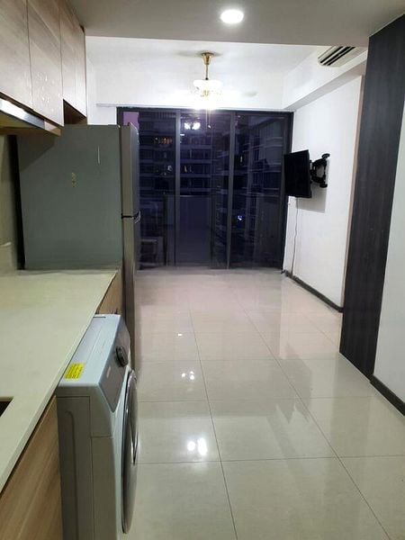 Step into a world of modern elegance as you enter this beautifully renovated unit at The Poiz Residences. Bathed in natural light, the open concept living area features floor-to-ceiling windows that frame breathtaking views of the city skyline and lush greenery. The polished tile flooring enhances the minimalist ambiance, creating a serene and inviting space to unwind.