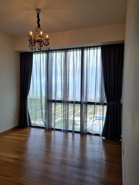 Step into a world of elegance as you enter this beautifully renovated unit at Marina One Residences. The bright and airy ambiance is accentuated by polished marble flooring and floor-to-ceiling windows that frame breathtaking views of the sea, greenery, and ships sailing by. Designer chandeliers add a touch of sophistication, making every moment spent here feel luxurious.